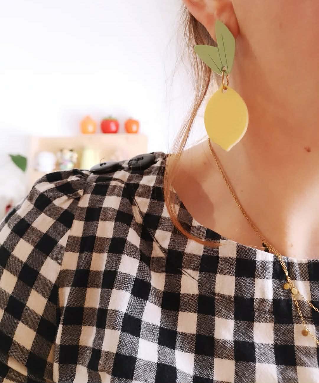 Boucles d'oreilles citrons en plexi coloris vert et jaune pastel
